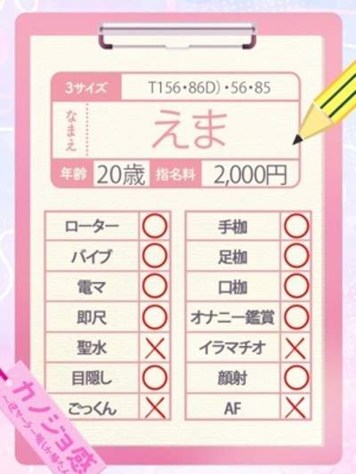 【超ロリっ子の愛嬌抜群!!】 【もちろん感度も抜群ですよ♡】 【ご奉仕も大好きすぎて困っちゃうくらい♡】 街ですれ違うと二度見してしまう 黒髪ショートの清楚でおっとりした かわいい雰囲気の女の子♡ 話してみると 人懐っこく、明るく、天然♡ 表裏がない彼女の性格は 世の男性を一瞬に虜にしてしまいます!♡ ちょっとした仕草や視線の使い方には色気があって 何気ない会話すらドキッとさせられること間違いなし! イチャイチャが得意で甘え上手♡ でも時々ふっと見せるMっぽい目がたまらなく 【そのギャップがクセになっちゃいますよ♡】 更にとっても濡れやすいタイプ♡ ひとたびスイッチが入ってしまえば 普段の清楚なイメージとのギャップに ぐんぐんと惹きこまれ もっと感じてる姿を見たくなる事 間違い無し!! まるで付き合い初めの初々しい感じと 刺激的な一面を同時に味わえる 【えま】ちゃんと 是非えっちで素敵な思い出作ってみては いかがでしょうか♡
